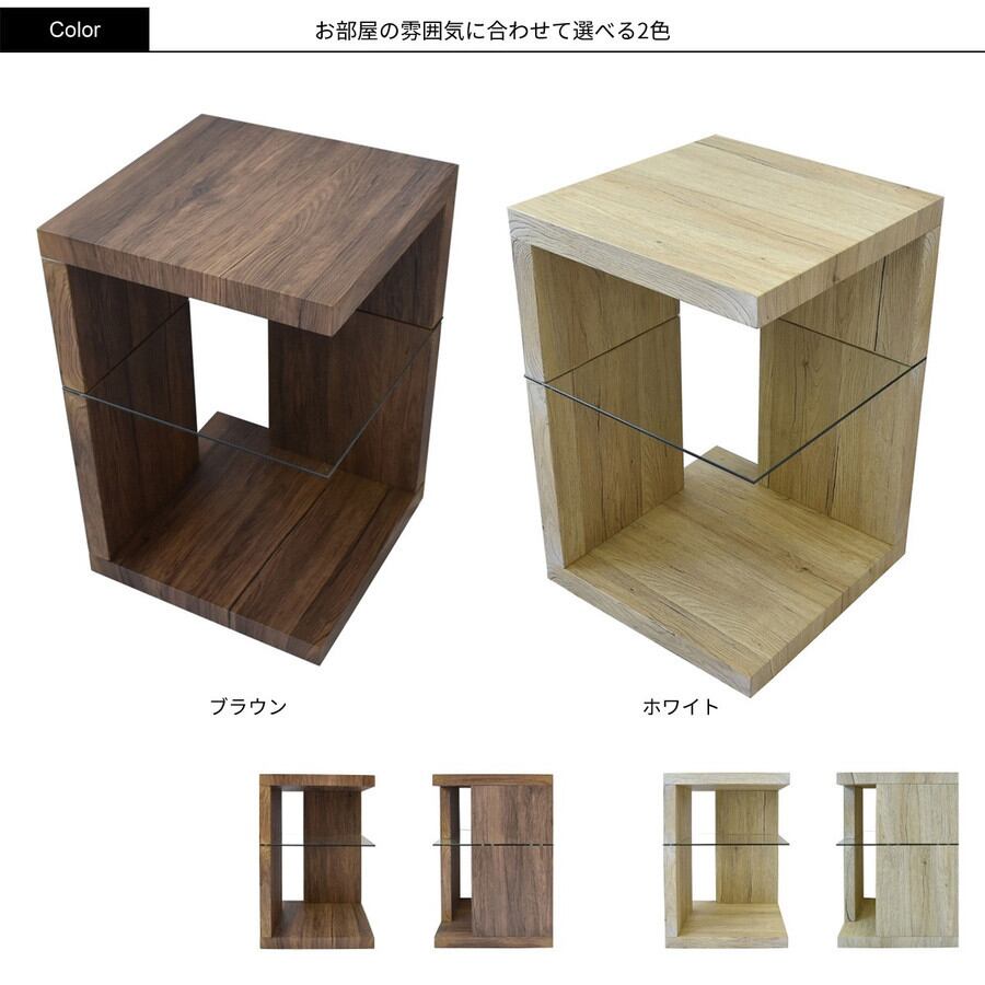 【大特価!】サイドテーブル ソファーテーブル ナイトテーブル リビングテーブル 机 ブラウン ホワイト モダン 北欧 ガラス 幅39 【フラッシュ】 木目調 洋室 洋風