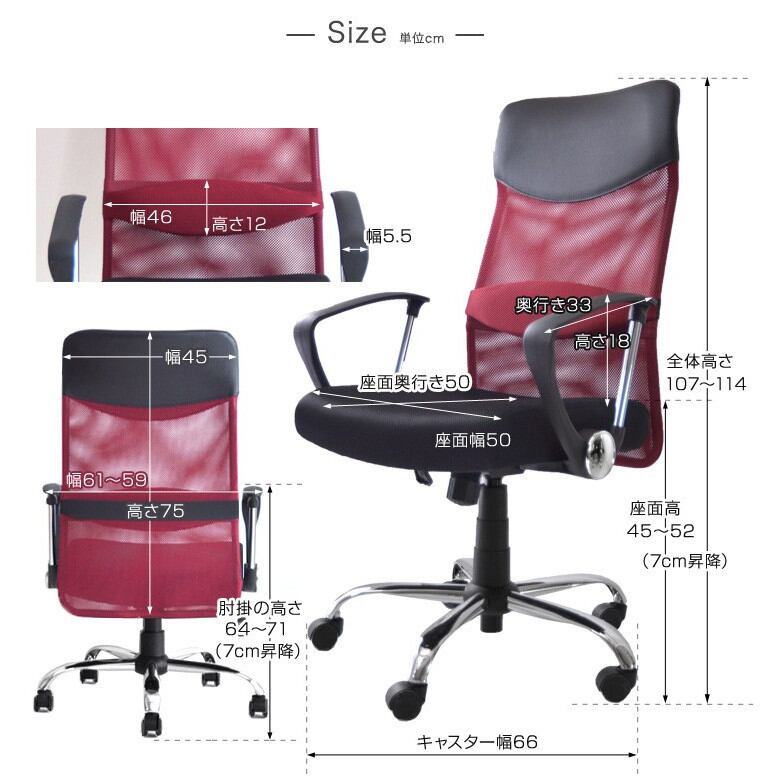 ・通気性に優れるプロ仕様の競技用メッシュ張りオフィスチェア