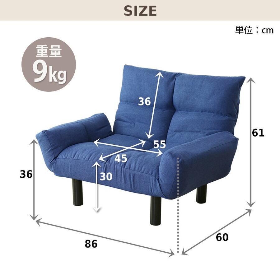 ソファ:幅86×奥行60〜77×高さ46〜61(cm)(脚あり〜脚なし)