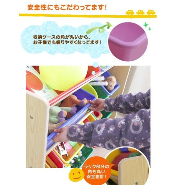 ケースの色ごとに種類分けが出来たりと、お子様の工夫して片付ける力を伸ばせます。