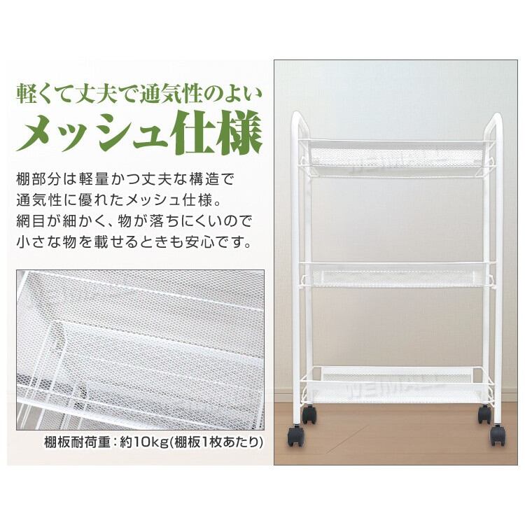 収納スペースの少ない場所で有効活用できるメッシュカートです。