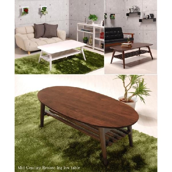 スタンダードな楕円形と滑らかな曲線が美しい直線から選べるローテーブル。