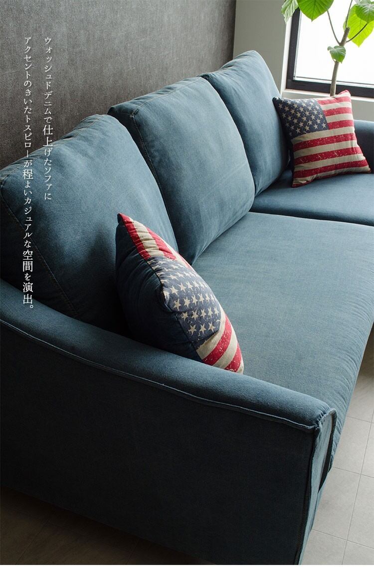 【大特価!】カウチソファ 3人掛け ソファー デニム ファブリック ビンテージ調 コーナー ソファ シンプル ユナイテッド デニム生地 ブルー