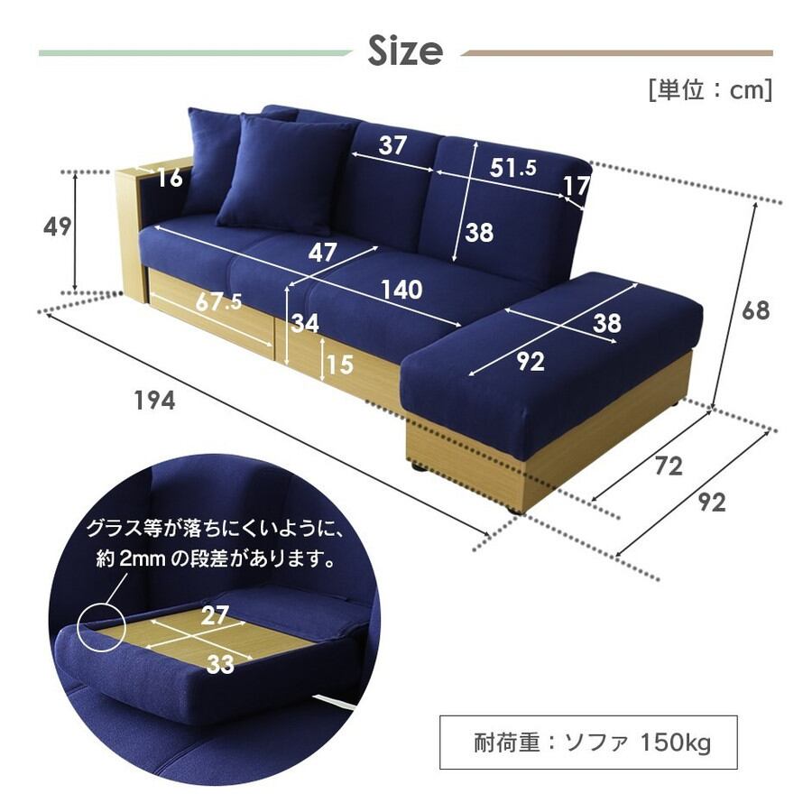 本体:ソファ時:幅140x奥行71x高さ68x座面高34(cm)