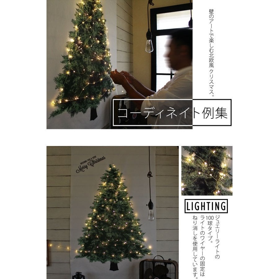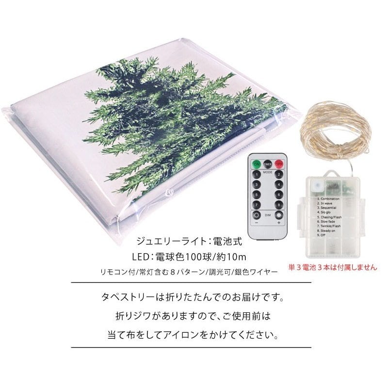 【大特価!】クリスマスツリー タペストリー 144cm×90cm 壁掛け 1枚 +LEDジュエリーライト100球のお得セット