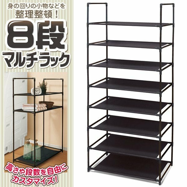 【大特価!】8段式 マルチラック 高さや段数を自由に調節 インテリア収納 メタルラック 141cm 工具不要 組み立て簡単 軽量 リビング キッチン 家具 洗面所 ◇ 8段ラック HAC