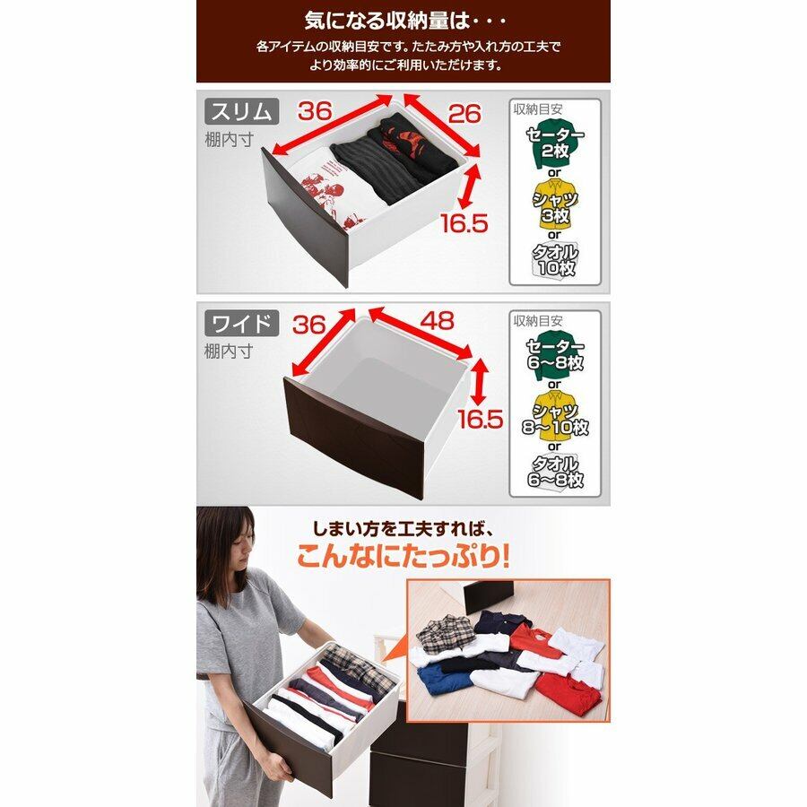 ●1段あたりの収納目安:Yシャツ8-10枚、バスタオル6-8枚、セーター6-8枚