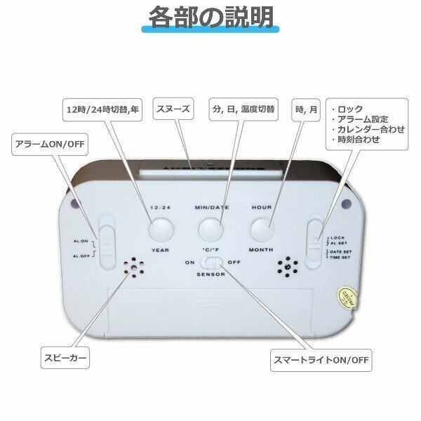 目覚まし時計、温度、カレンダー、バックライトまで便利な機能が揃った多機能目覚まし時計です