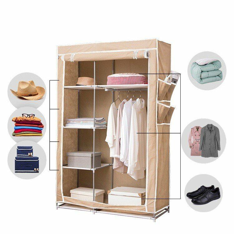 【大特価】ハンガーラック 収納 カバー付き ワードローブ マルチラック クローゼット 帽子 バッグ 靴 ny148