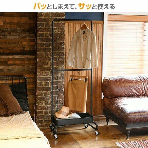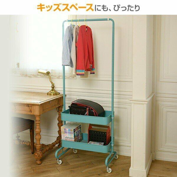 【大特価】バスケットトローリー ハンガーラック キャスター付き LTH-2B/LTH-2H トローリーハンガー バスケット付き 収納付きハンガーラック バスケットワゴン