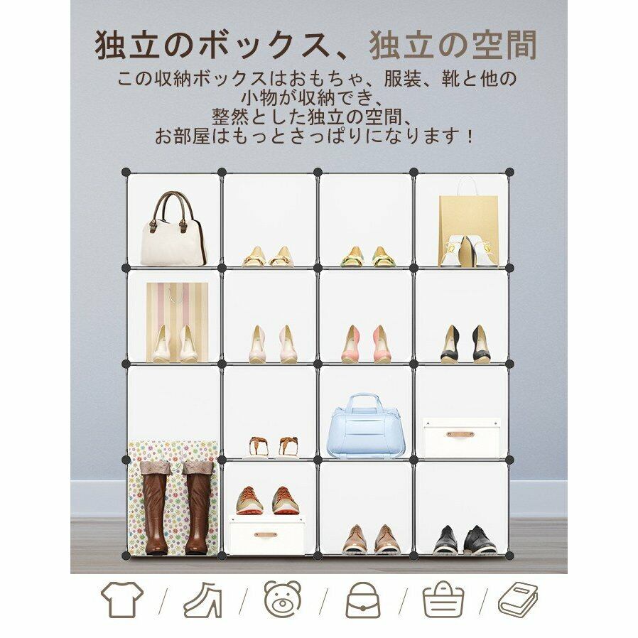 【大特価】クローゼット シューズラック 透明色 衣装ケース 衣類収納 DIY収納 収納棚 組み立て式 16個ラックセット 扉無し 大容量 LANGRIA