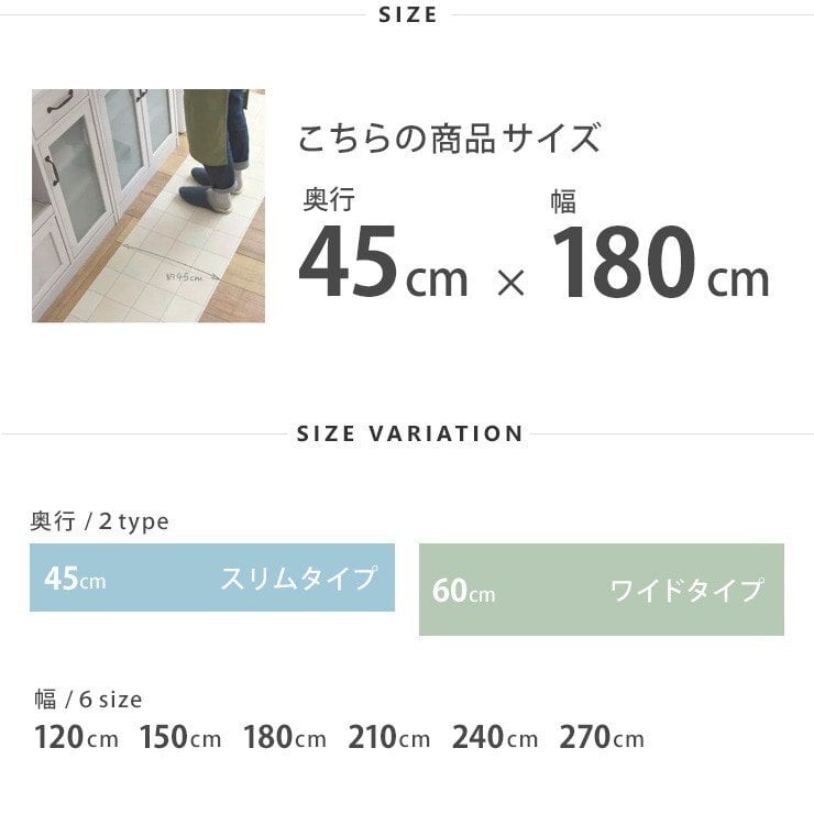 【大特価】キッチンマット 180 日本製 おしゃれ 拭ける クッション 北欧 撥水 はっ水 防水 フリーカット 木目 ホワイトタイル テラコッタタイル 45cm×180cm スリム
