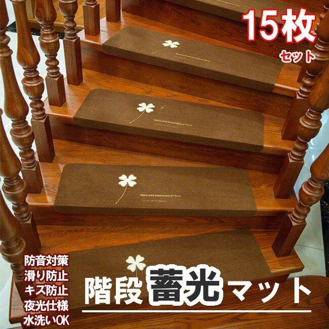 【大特価】階段マット 15枚セット 滑り止め 蓄光式 足冷え 防音対策 水洗い 滑り防止 キズ防止