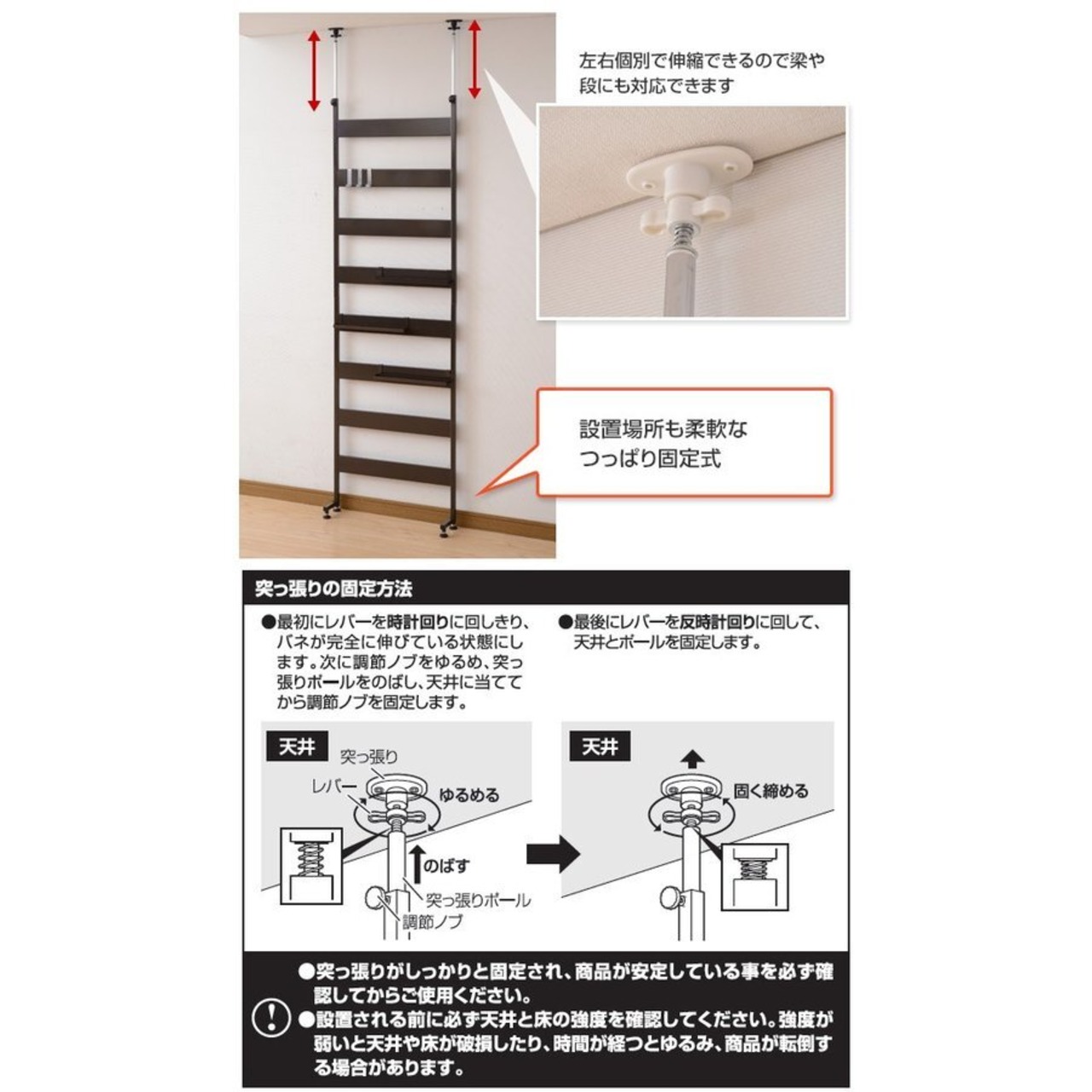 突っ張り式で省スペースに設置できる