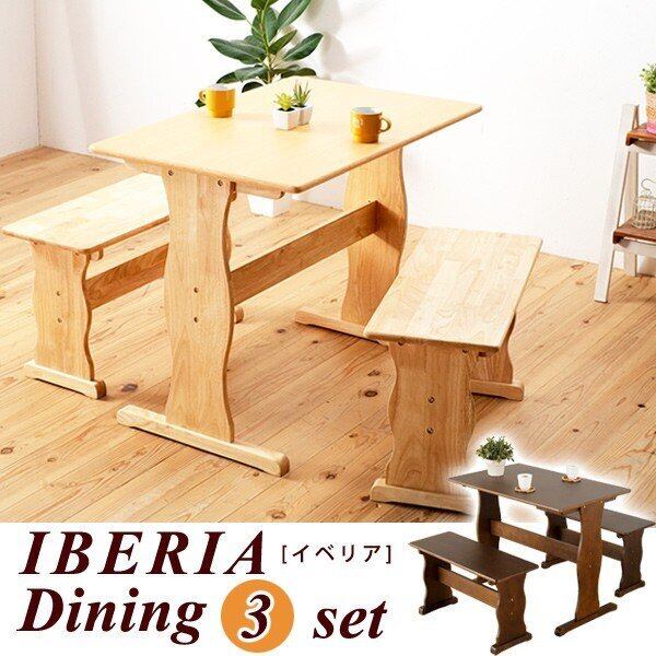 【大特価】ダイニングテーブルセット 3点セット ダイニングセット 2人 2人用 北欧風 食卓 テーブル ベンチ スツール 木製 幅90cm コンパクト 省スペースカフェ