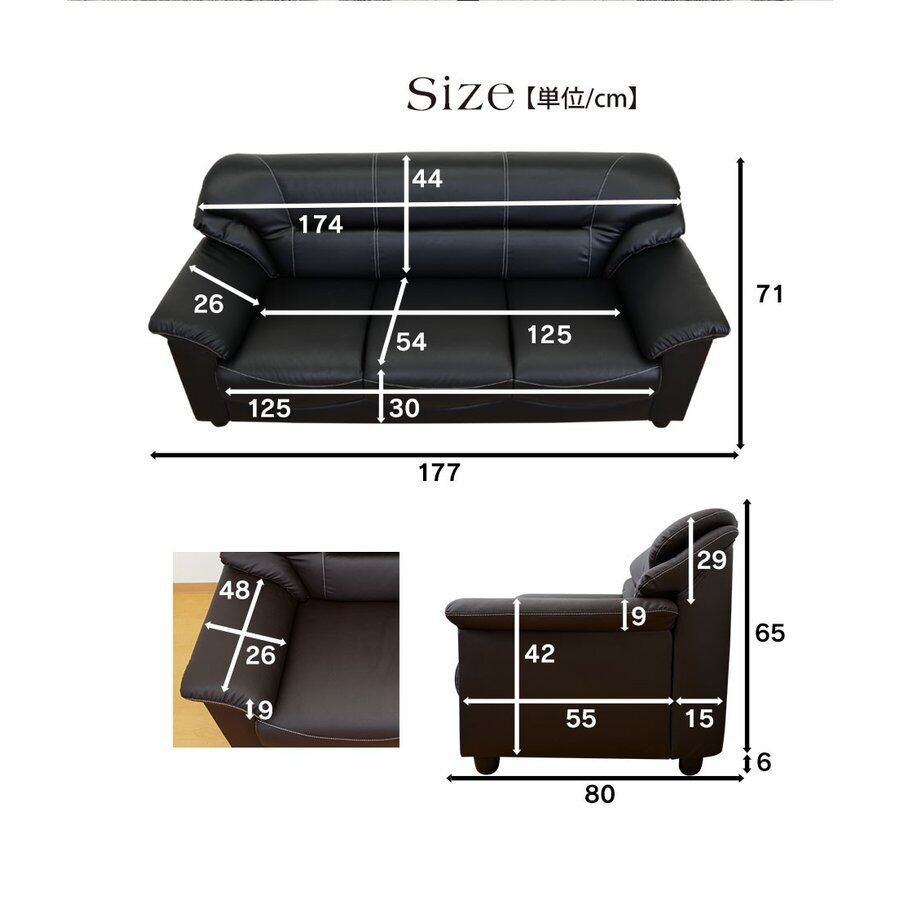 ソファ本体/約:幅177×奥行80×高さ43 座面高36(cm)