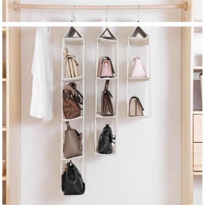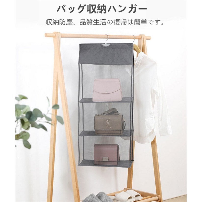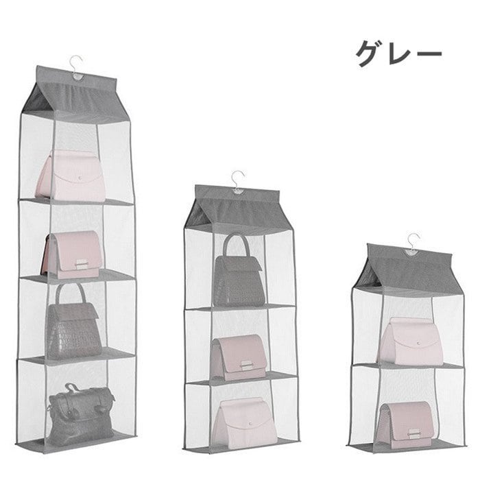【大特価】吊り下げ式バッグ収納ハンガー 無地 中身可視 バッグ収納ホルダー カバン収納 フック付き クローゼット ラック 壁掛け/整理整頓/立体/防塵/型崩れ防止/お片付け