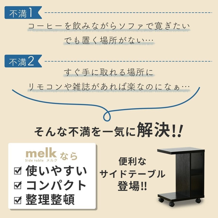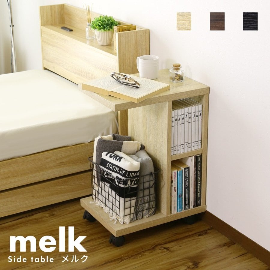 【大特価】サイドテーブル おしゃれ キャスター 収納 ロータイプ ベッド ロータイプ デスクワゴン ウォルナット ブラック オーク メルク 新生活
