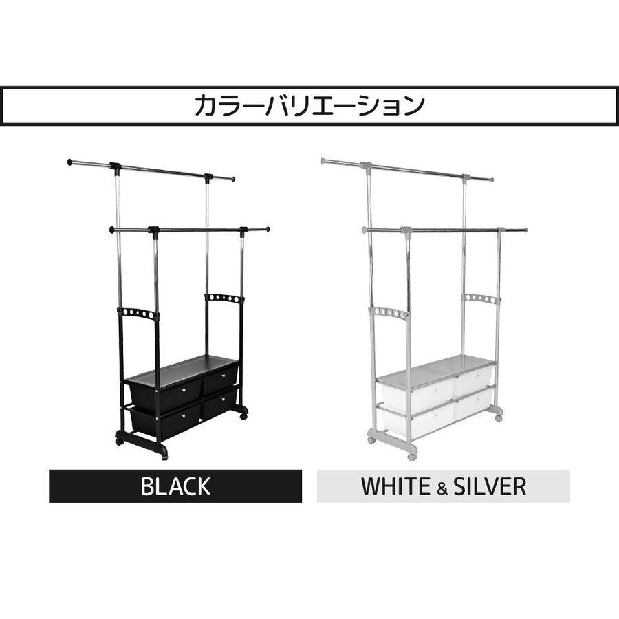 【大特価】【新生活応援フェア】台湾製 4チェスト付き ハンガーラック 収納 チェスト ハンガー ツイン 物干し 収納BOX 洋服ダンス