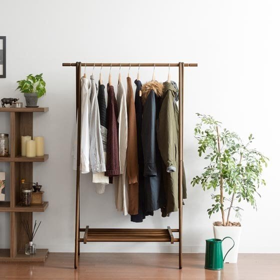 【大特価】ハンガーラック おしゃれ 木製 スリム コートハンガー 折りたたみ 棚付き 北欧 モダン シンプル ポールハンガー 衣類 収納 家具 ワイドタイプ