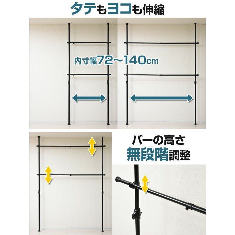 【大特価】天井突っ張り式 ハンガーラック 2段 幅伸縮式 (最大幅166cm) つっぱりラック クローゼット 突っ張り シェルフ 棚 伸縮 収納 ラック つっぱり棚 壁面収納