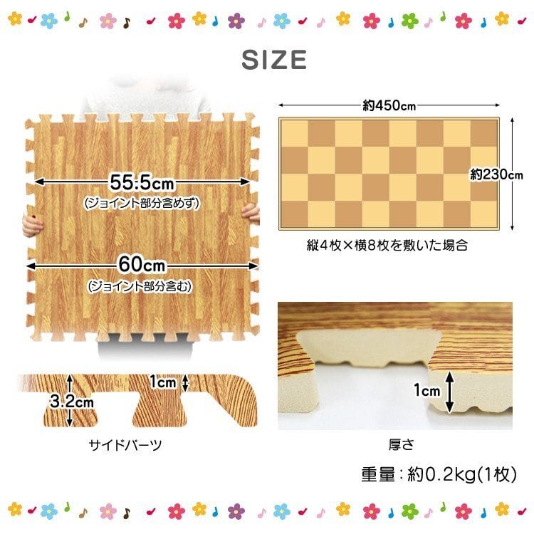 【大特価】ジョイントマット 大判 60cm 木目調 32枚 約6畳分 ベビー マット 防音 騒音 吸収 厚さ1cm 赤ちゃん クッションマット 置くだけ サイドパーツ付