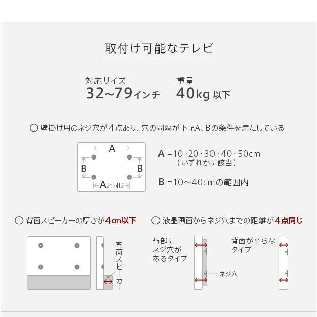 対応テレビサイズ:79インチ(40kg相当)まで