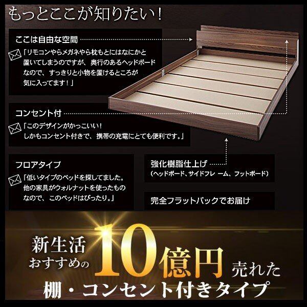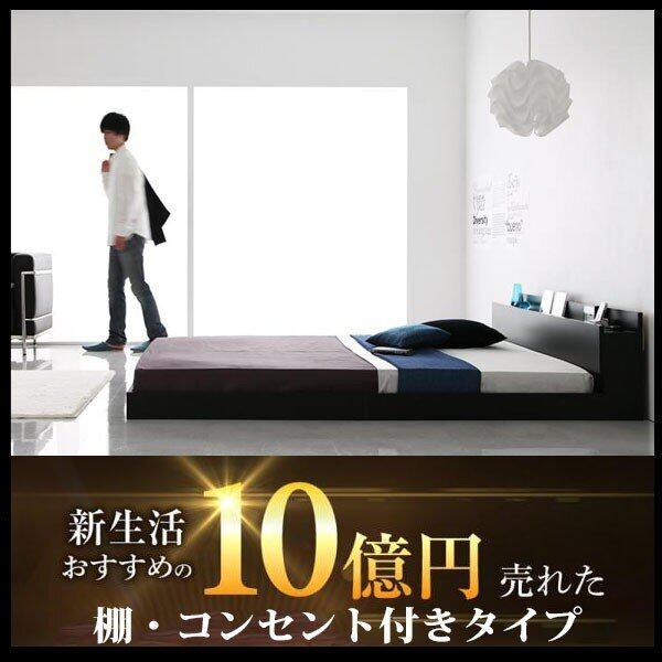 【大特価!】ローベッド シングル マットレス付き セット 棚・コンセント付き スタンダードボンネルコイルマットレス付き
