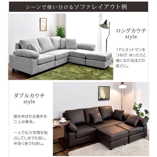 ・くつろぐカウチソファや、オットマンを離した来客用スタイルにも