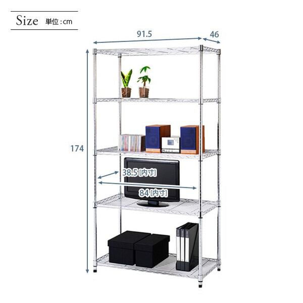 【クリアコーティング加工】 幅90 5段 ルミナス スチールラック