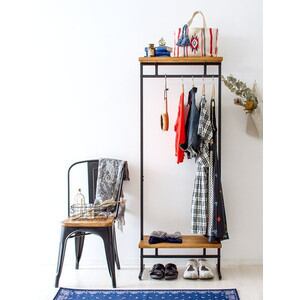 【大特価!】ハンガーラック おしゃれ 木製 スチール アイアン スリム コートハンガー ポールハンガー 衣類収納 ハンガーポール 幅60 棚付 コートハンガーラック
