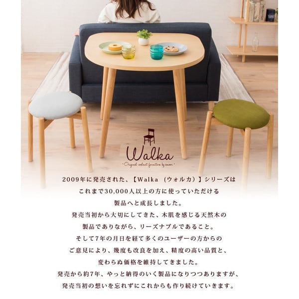 シンプルでお洒落なスツール。ご自宅の床の色に合せて、木部分はナチュラルとブラウンの2色をご用意しました。張地もインテリアになじみやすいトーンを落とした色合いの4色からお選びください。