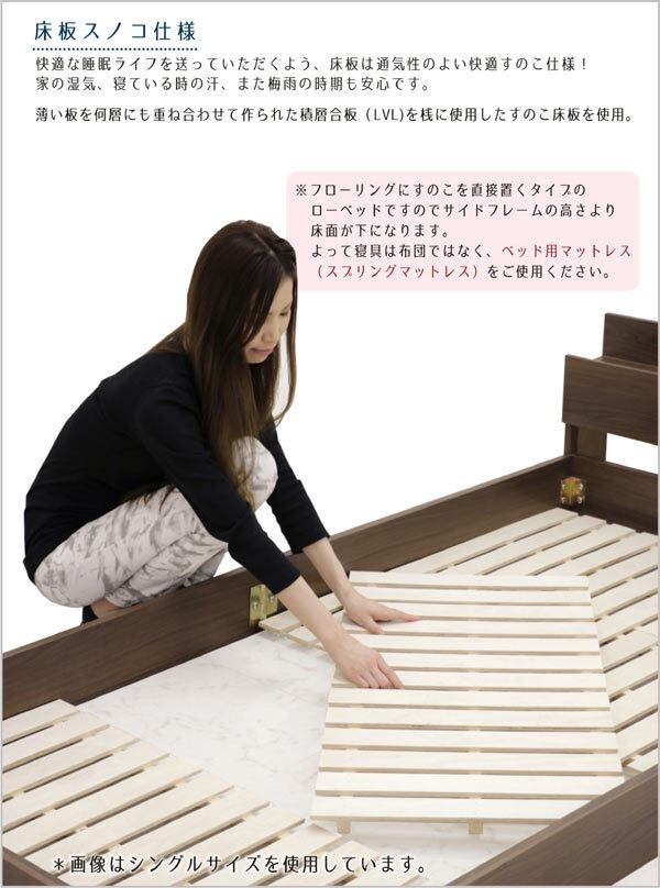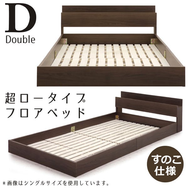 フロアベッド ダブル ベッド ローベッド ダブルベッド フレーム すのこベッド すのこ 宮付き 宮付 フレームのみ ブラウン 棚付き コンセント付き 北欧 シンプル ベーシック
