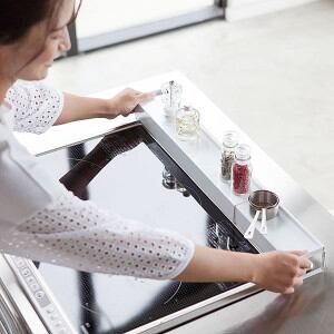 カバーするだけでなく上に調味料やスパイスなどを置いてラックとしても使うことができるので、デッドスペースになりがちな排気口上を有効活用できるのも嬉しいポイントです。