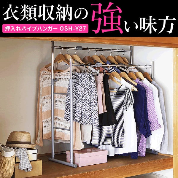 【大特価!】ハンガーラック 押入れ 2段 パイプハンガー OSH-Y27 押入れ収納 クローゼット 洋服掛け 伸縮 衣替え